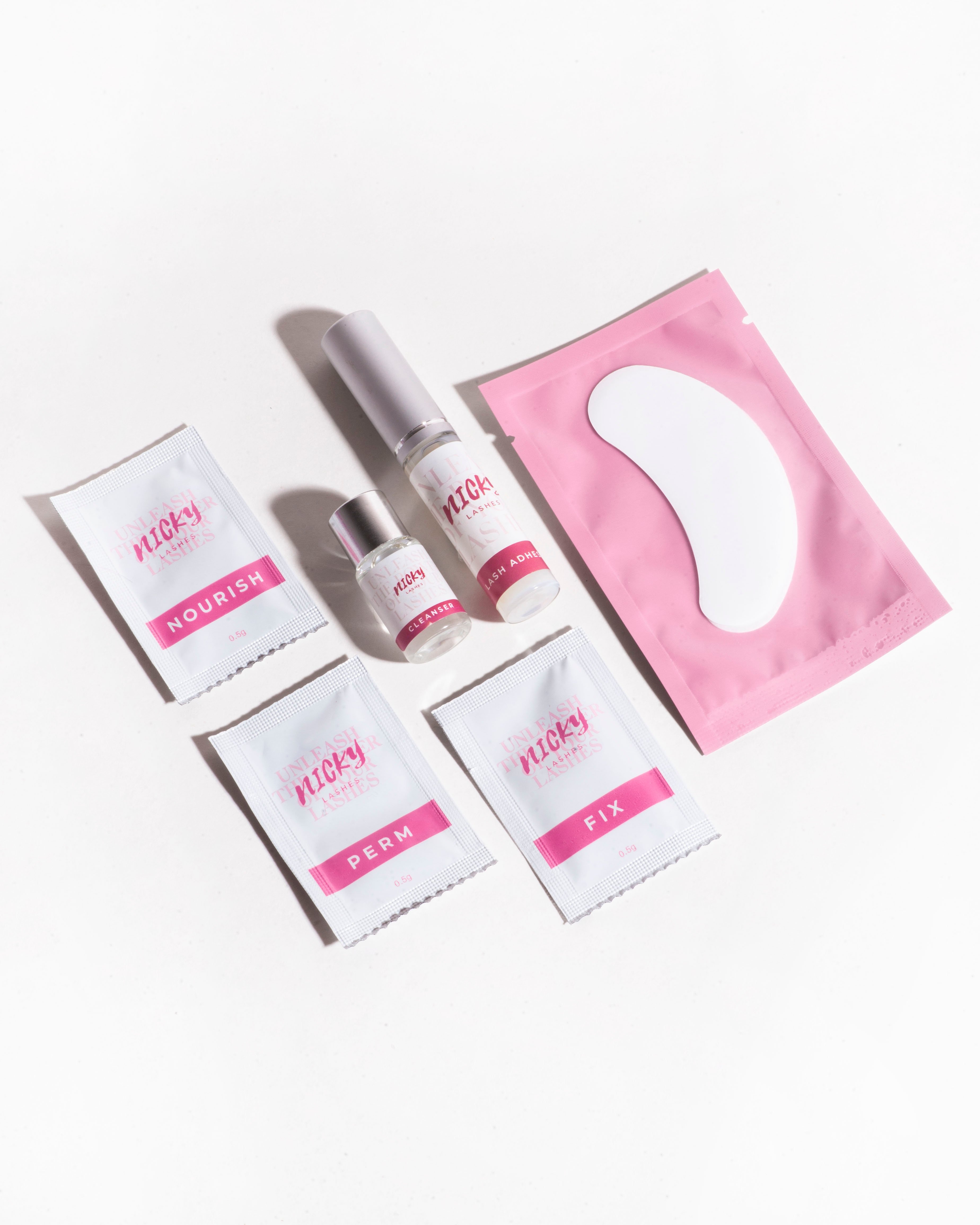 Nicky's kit combines the tool and ingredients required for the perfect lash and brow lift in ONE kit.